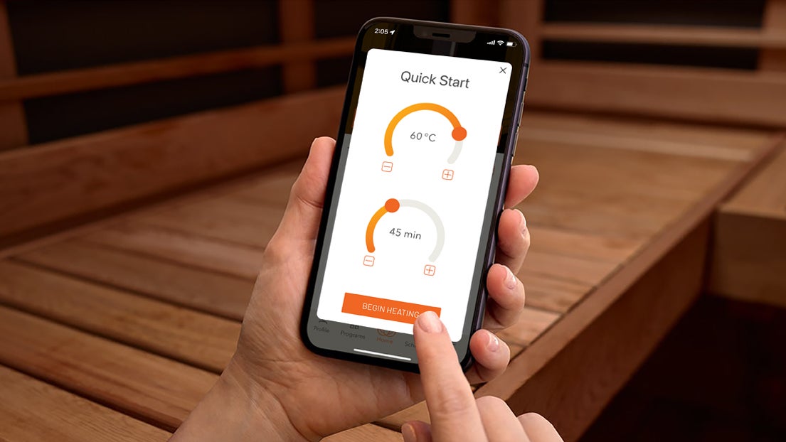 The mPulse Smart Sauna's mobile app connects your sauna with your life. It's the ultimate convenience tool for managing your sauna and incorporating it into the rhythm of your life for better results!